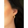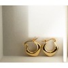 Our geometric Aryana hoops are beautifully crafted in high-quality stainless steel 18k yellow gold plating, giving them a luxurious shine, just right for any wardrobe, day or night. These lightweight hoops feature a unique chunky tubular shape set onto click-top posts for pierced ears, adding a contemporary influence to your jewelry look.