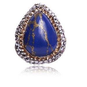 Embrace the incredible blue color of lapis lazuli, and wear it every day for an uplifting detail from nature's beauty. This statement ring features a faceted dome-shaped lapis lazuli in the middle with glittering round brilliant cut cubic zirconias pave set around the lapis.
