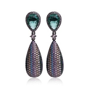 These jeweled door knocker earrings are the ultimate accessory for an elegant look! Pretty pear-shaped stones and rows of colorful mini stones elevate these dangles to a sophisticated style, all in a rich black finish.