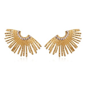 These beautiful earrings feature a brightly polished finish and a fanned-out silhouette, giving the classic infinity hoop a dose of vintage-inspired glamor and noteworthy elegance. A textured finish and sparkling stones highlight the face, bringing all attention to you. Secured by straight posts for pierced ears.