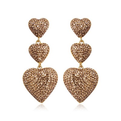 Three hearts collide on our Mona Earrings, featuring three graduated-size heart dangles glittering with stones and crafted with durable plated 925 sterling silver. Posts backs keep these heart drop earrings in place, giving them a joyful swing when worn. Add romance to any wardrobe with these chic hearts.