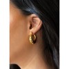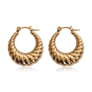 Our oblong Starla Hoop earrings capture a classic crescent/croissant design featuring a tubular shape with a scalloped texture. These lightweight hoops sit securely on the ears with click-top posts, all in brightly polished, durable stainless steel 18k yellow gold plating. Add a pair of unique earrings to your Ear Party look, or wear these pretty hoops solo.
