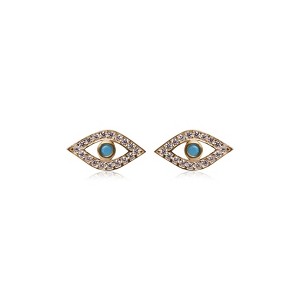 These mini evil eye studs are more than just beautiful! They enhance good luck and ward off bad intentions, creating luck and increased fortune when they are worn. Round brilliant cubic zirconias and uplifting turquoise stones in the center of each eye add a cheerful color and sparkle, all in a bright polished finish.