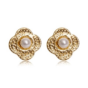 Add a touch of antique style to your casual or night wardrobe with our 18k gold plated stainless steel Zyana Studs, featuring shimmering pearls in the center of hammered flower petals. Butterfly backs secure these unique floral earrings, making them the perfect finishing touch to your accessorized look.