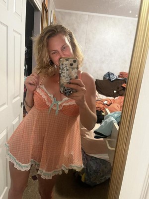 [This review was collected as part of a promotion.] Oh my God, it’s adorable!! The Coral and white checkers a little turquoise spell the panties that go with it . I’m obsessed! I really am . So glad I got a chance to grab this one! I’m a big fan of the lingerie and the baby dolls and the garter belts in the stockings in this one right now. Looks so cute on its hanger In its new home with its new forever owner, that will be ooooo and ahhhh’ing it for years! She’s country cute . on me of course