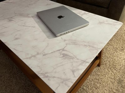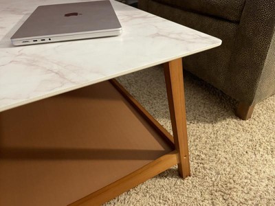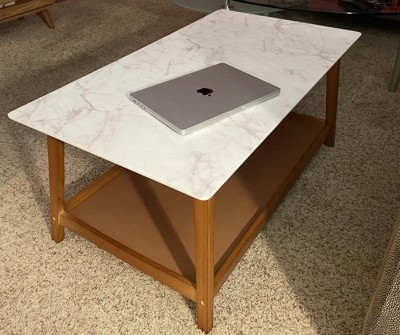 Buylateral Jhovies Coffee Table - Walnut: Faux Marble Top, Solid Wood Frame, Lower Storage Shelf