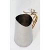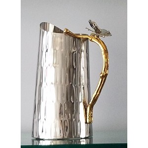 Delightful dragonfly water pitcher displays along the handle. The silver hammered stainless steel water pitcher works add a touch of and serve with class.