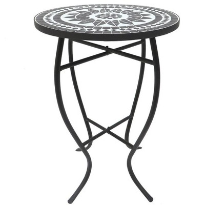 Adorable accent table for your patio, porch, balcony and all space in your house. The collection of mosaic tables all have beautiful colors and great texture, great for either indoor and outdoor use. Made in smart size for any small spaces like on the corner of your porch. The table features a collection of vibrant color tiles mosaic design brimming with intricate detail. The metal construction with mosaic glass table top make this table sturdy and attractive. This accent table can be also used for your outdoor plants to beautify your space. You can also use it your living room as a side table or plant table. It is easy to move around and can be used as an accent table for your dinner parties. This table is just versatile, pretty and sturdy.