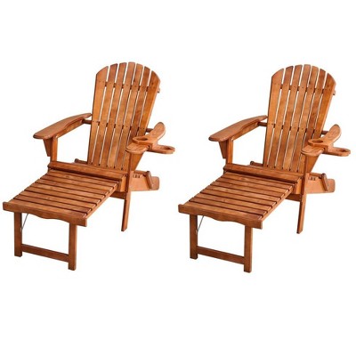 The Adirondack Chaise Lounge chair is a staple of the backyard patio, providing both casual comfort and timeless beauty. Constructed of beautiful pine wood that resists moisture and cracking, the reclined back, oversized arms, and a gently sloping seat. Equip with an interchangable cup and wine glass holder, made with PVC, to suit your party need. Simply pull out the built-in ottoman and experience a new level of relaxation as you read a book or absorb the sun rays. The Adirondack Chaise Lounge will easily be folded to save storage space and to transport it effortlessly. A truly luxury classic outdoor experience.