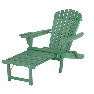 Jiallo Oceanic Collection Adirondack Chaise Lounge Chair Foldable, cup and glass holder, built in ottoman