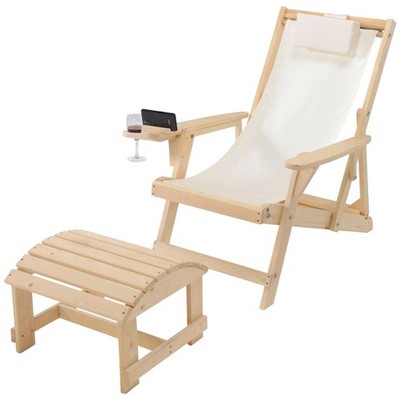 Jiallo Romantic Collection Canvas Sling Chair with Cup and Wine Holder and Ottoman