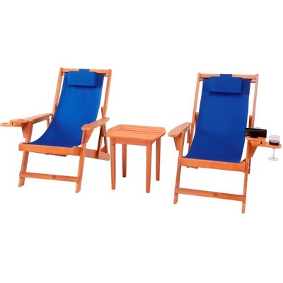 Jiallo Romantic Collection Canvas Sling Chairs with Cup and Wine Holder and end table