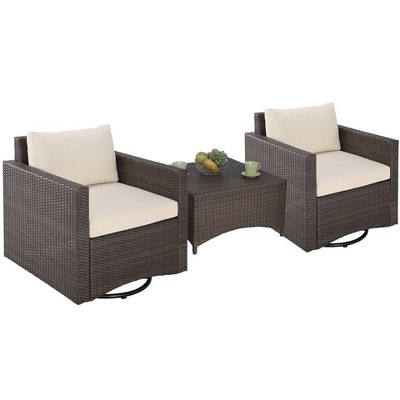 This is the perfect outdoor set for any outdoor space, you can still enjoy a cup of coffee under the sun, or have a few drinks with friends! The versatile design allows it to be rearranged into different configurations for your need and for special event. Engineered all-weather synthetic wicker to mimic the natural look and feel of natural wicker. Exclusive design and skilful weave patterns for added strength and durability. The rich brown color provides a premium outdoor look.