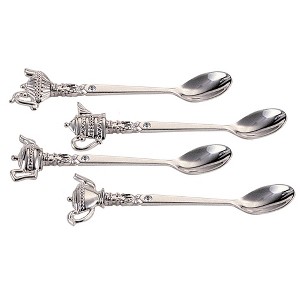 Adding fun little details to the way your serve food and drink items is a way to get your guests attention and keep them coming back. This set of Teapot Tea Spoons with Crystal is definitely no exception to this rule. These spoons are actually constructed out of stainless steel, but they feature a beautiful silver-plated finish. In addition to the glamour that silverware will add to serving iced-tea, each spoon features a fun tea pot on the end of each of the long handles. Crafted of silver plated material. Set includes 4 spoons. Accented with teapots and crystal at tips. Measures approximately 4-Inch long. This set of Teapot Tea Spoons with Crystal is definitely no exception to this rule In addition to the glamour that silverware will add to serving iced-tea, each spoon features a fun tea pot on the end of each of the long handles.