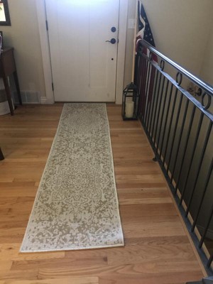 Great look for my entry will be able to withstand wear and tear and tracking of dirt from outdoors. I did not purchase a pad and I have wood floors and will definitely need to purchase because it does slip. I wished it would of come a little wider to cover full with of door opening however, it will serve its purpose. Wiping up any spills or shaking off any dirt shouldn’t ne a problem. This is an outdoor material so perfect for my dog no fabric loops for his nails to get caught in. All around good fit