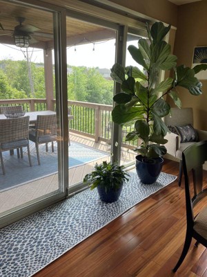 This rug is perfect for my outdoor exit to my deck. It sits inside my 9 foot doorwall and I have plants on it. The padding was also perfect for the runner.
