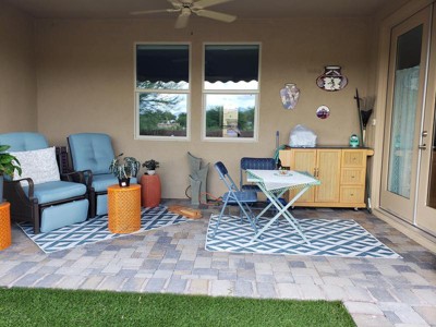 This outdoor rug has received high praise for its vibrant colors, soft texture, and ability to transform outdoor spaces. Guests appreciate its durability and ease of cleaning, making it ideal for high-traffic areas. Many have noted that it dries quickly and lays flat after unrolling. The rug's design complements various outdoor furniture styles, enhancing the overall aesthetic of patios and decks. Overall, it is a stylish and functional addition to any outdoor setting.