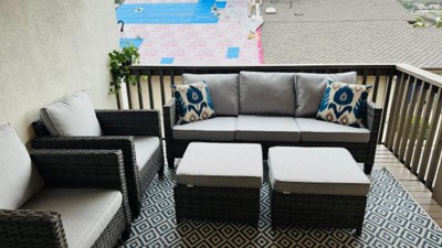 • EASY CARE: For an outdoor rug, remove debris frequently with the use of a broom or blower. To wash, spray the surface with a soap and water mixture, then rinse thoroughly with a garden hose and hang over a railing to dry thoroughly. Rotate for even wear.