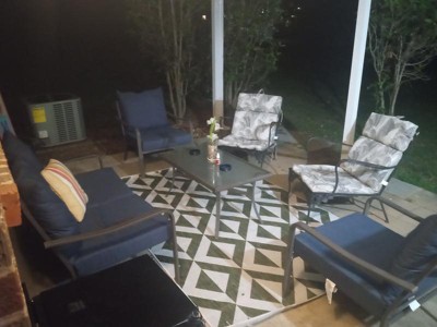 This outdoor rug has received high praise for its vibrant colors, soft texture, and ability to transform outdoor spaces. Guests appreciate its durability and ease of cleaning, making it ideal for high-traffic areas. Many have noted that it dries quickly and lays flat after unrolling. The rug's design complements various outdoor furniture styles, enhancing the overall aesthetic of patios and decks. Overall, it is a stylish and functional addition to any outdoor setting.