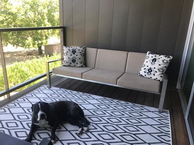 • EASY CARE: For an outdoor rug, remove debris frequently with the use of a broom or blower. To wash, spray the surface with a soap and water mixture, then rinse thoroughly with a garden hose and hang over a railing to dry thoroughly. Rotate for even wear.