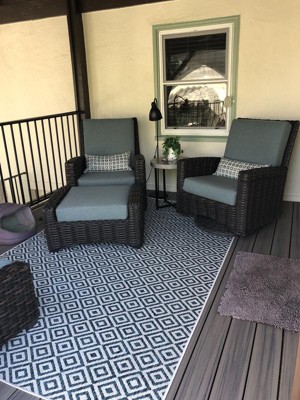 • EASY CARE: For an outdoor rug, remove debris frequently with the use of a broom or blower. To wash, spray the surface with a soap and water mixture, then rinse thoroughly with a garden hose and hang over a railing to dry thoroughly. Rotate for even wear.