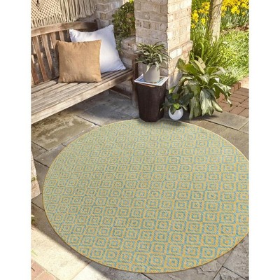 Jill Zarin 6' 7 x 6' 7 Round Indoor/Outdoor Yellow and Aqua Area Rug