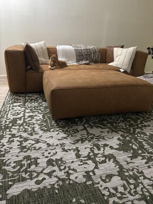 Perfectly fit under my couch and ottoman. Decided to use it inside. Super easy to vacuum and the texture is delicious