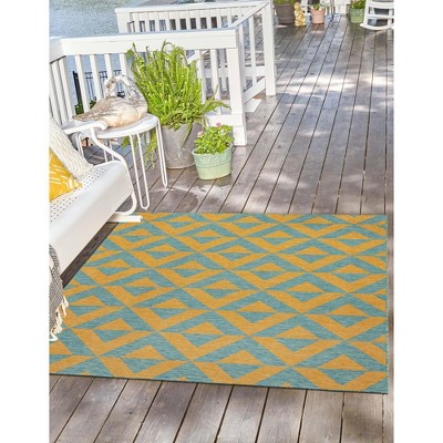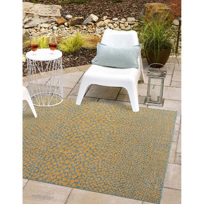 Jill Zarin 7' 10 x 7' 10 Indoor Outdoor Yellow and Aqua Area Rug