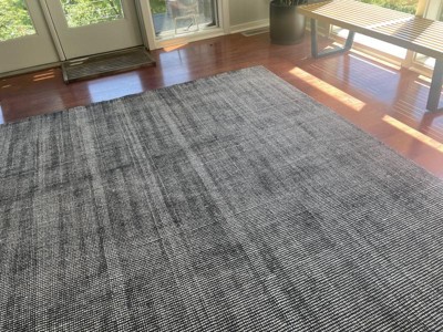 Was looking for a rug for this space with some texture and color variation, but not too busy, soft but not too fluffy, and this rug covers all of that criteria. It arrived quickly and with no “new carpet smell” and no shedding. It has taken a lot of time to get random wrinkles out, including ironing with a wet towel, and placing heavy furniture on top, which has been key, because the stripe pattern makes the wrinkles really noticeable, but I’m super happy with the quality, value, and overall added warmth and texture it gives to the space. The dotted stripe pattern does have some ransoms variation that can look like lines from the machines or mistakes, so you should be comfortable with that if you go with this rug. . This is the 9x12 in Earl Gray