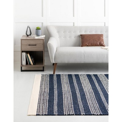 Get swept away by the chic, coastal aesthetic, and luxury of this famed East Coast getaway with the Jill Zarin Hamptons Collection. This Jill Zarin branded collection is inspired by the socialite and style maven's luxurious Hamptons homes. And now you can bring that same beach beauty to your home, all year round. Made of natural materials, the collection features a high-quality 50% jute, 30% wool and 20% cotton combination, making it both durable and a joy to walk on. The hand woven, flat weave construction is shed-free and easy to maintain. A curated selection of muted colors is drawn from the same neutral colors you'd see on some of the most exclusive Hamptons beach homes. Choose from shades ranging from gray and tan sand to nautical navy and sky blue. Each color is complemented in its broad, classic stripped patterning by timeless ivory. Perfect for multi-room placement or for anyone who wants to add a bit of subtle geometric design to their floor decor. Our handmade Jill Hamptons Collection is sure to give any room a glamorous retreat makeover.