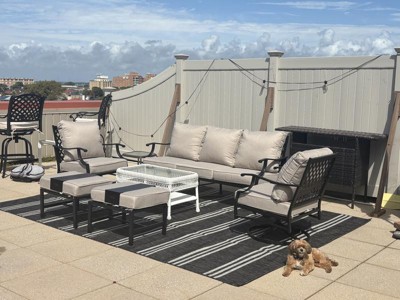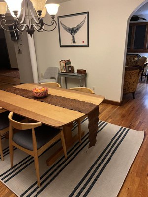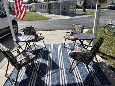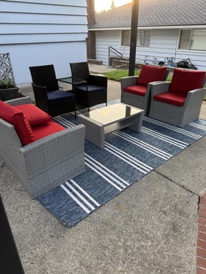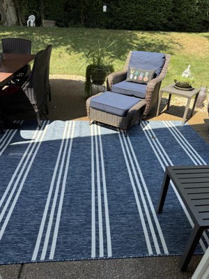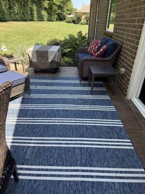 A: Yes, its flat-weave pile allows for seamless placement under furniture both indoors and outdoors.