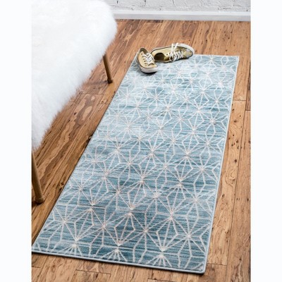 • Size in FT: 2' 7" x 13' 11" Runner - Size in CM: 79 x 424 - Pile Height & Thickness: 1/3" - Colors: Blue, Ivory