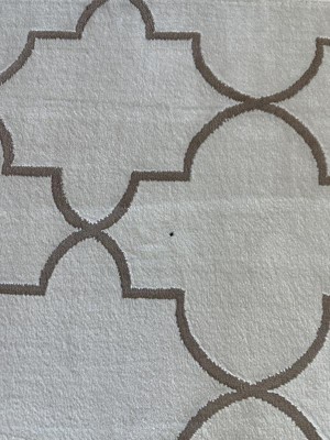 Rug is soft and corners laid flat within a day. Color is overall more beige than pictured, and I can see where some reviewers felt the rug fibers moving in a certain direction almost give it a dirty appearance. The biggest issue, however, is there are several areas where dark fibers appear. I tried to wipe off what I thought was a clump of dirt and it is dark fibers. I tried to trim them and haven’t had any luck (they’d create a bald spot anyway). Probably 4 spots in total. I’m putting it under a bed, so they will conceal, but this wouldn’t work for the center of a room. I’m keeping it because returning a rug is a pain and this is replacing a new $400 safavieh rug that never stopped smelling, so I’m just glad to have a low pile rug that doesn’t stink, but overall, the quality of this rug is mediocre.