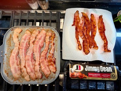 [This review was collected as part of a promotion.] I was surprised to discover that Jimmy Dean has bacon! The apple flavor is subtle, but it’s still there. It shrinks up like other bacon, but it still passes the bacon test. I would buy again!