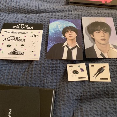- BTS member Jin Is releasing a brand-new single titled “The Astronaut.” This release will be available in two versions. Contents include a CD, Outcover, Booklet (84 pages), Lyric Card, Folded Poster, Postcard, Seal Sticker (random 2 of 8), Graphic Sticker, and Photo Card (random 1 of 2). Product Dimensions: 150 x 150 x 20 mm.