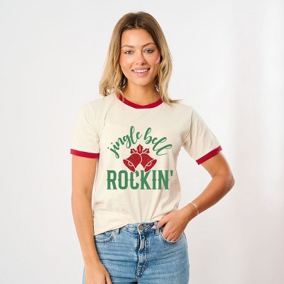 Product Name: Jingle Bell Rockin' Bell Glitter - Womens Ringer Tee