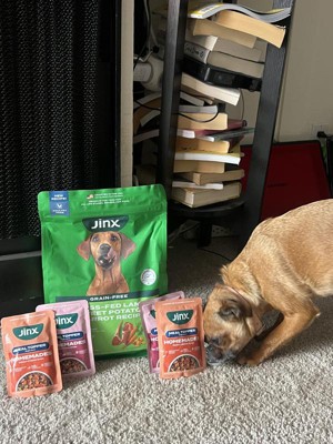 [This review was collected as part of a promotion.] My dog LOVES any and all Jinx products. This one is no exception. I like to serve these with kibble so she gets some variety. My only concern is that the pouch packaging isn't the easiest to use. It's hard to scrape it clean, compared to cans. But other than that we love it!
