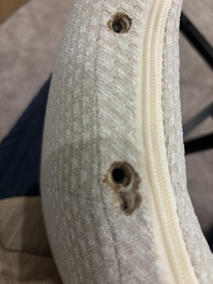 One chair had a very offset screw hole so bad i still cant remove it to comeplete the chair. In some places material looks burnt. Chairs dont stack.