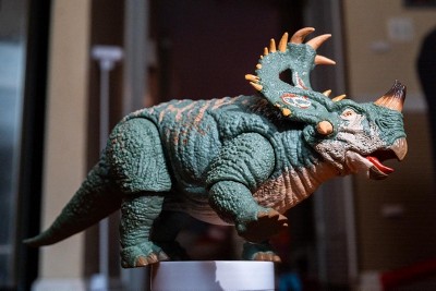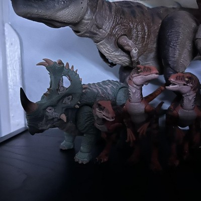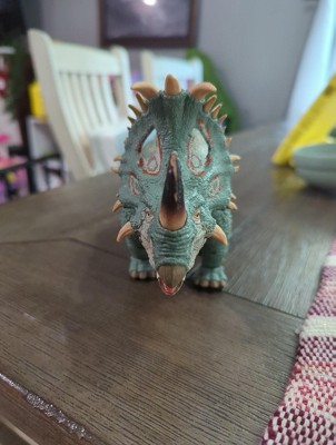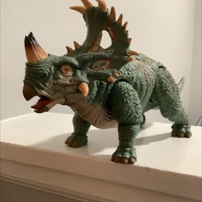 - To re-create the lava scene, this Sinoceratops figure comes with swappable horns one intact and one broken. It also has a swappable lower jaw one for an open-mouthed pose and one for closed.