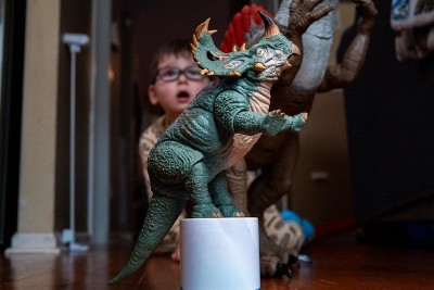 The Jurassic World Hammond Collection has created a new standard for collector action figures with deluxe articulation and lifelike details. This content-accurate Sinoceratops is inspired by the memorable lava scene in Jurassic World: Fallen Kingdom. Representing the large species, this 12-inch long figure comes with swappable horns. One horn is broken and one intact. It also comes with a swappable lower jaw to pose the mouth realistically open or closed. The deluxe features include realistic eyes, flexible tail and 14 articulations. This Sinoceratops will be a huge must-have for collectors 8 years and older. Colors and decorations may vary.