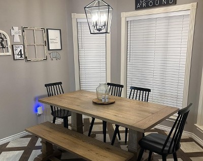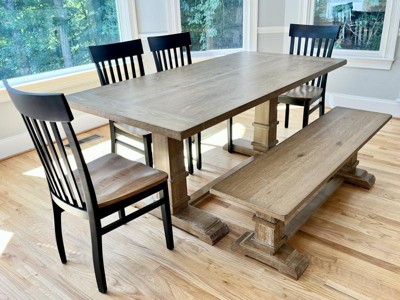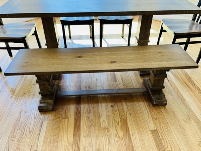 Combining a beautifully rustic finish with a classic farmhouse design, the Joanna Dining Bench adds laid-back elegance to any room. The substantial rectangular seat is supported by two large pedestal columns with decorative trim. Incorporate the Joanna Bench in your dining room or entryway, for stylish and durable seating for up to three people.