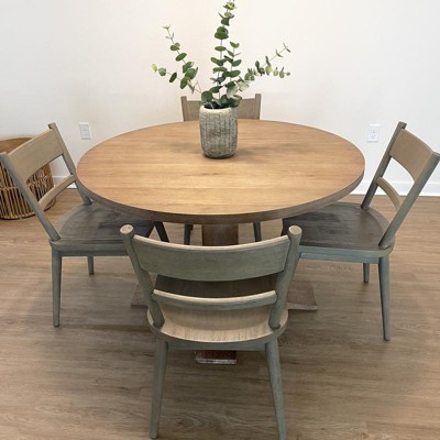 Achieve the look of laid-back elegance with the Joanna Round Dining Table. The substantial pedestal base and natural finish offer a blend of classic style and rustic chic. Both charming and spacious, this round top table provides comfortable seating for up to four diners. Gather around for quiet family dinner with the Joanna Round Dining Table.