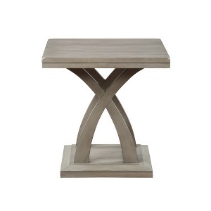 Constructed from hardwood solids and mango veneersCollection features a decorative base and thick double edge tops constructed of hardwood solids and mango veneersLevelers adjust table for uneven floorsGrey finish