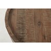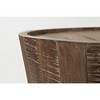 With a unique design and equally unique surface treatment, the Conundrum Distressed Solid Acacia occasional group is at home is coastal and urban decor. A flared drum construction on both the cocktail and end tables compliments the perfectly proportioned bookshelf of this solid Acacia collection.