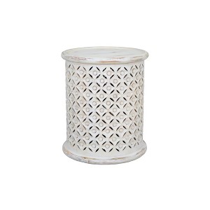Jofran, Decker Small Distressed Hardwood Global Drum End Table, White