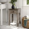 Crafted from solid rustic Pine, the charming farmhouse style of the Devon end table will be a timeless addition anywhere in your home. With a single drawer that provides practical storage for remotes or small items. The subtle distressed finish adds warmth and character that compliments the natural wood with a simple yet sophisticated design. Each table is slightly unique with a relaxed finish that adds rustic charm to a reading nook, bedroom or living room next to your favorite chair at home with family