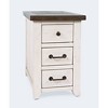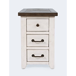 Experience the elegance of rustic farmhouse craftsmanship with the Madison County Collection. Made from solid reclaimed Pine, each piece showcases the natural beauty of the wood through unique weathering and intentional stress markings. Upgrade your living room with the comfortable and sophisticated style of this USB Charging Chairside End Table. With three built-in storage drawers and hidden USB power outlets perfect for powering all of your devices.