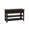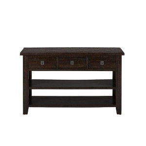 Perfect for creating a warm and inviting atmosphere in your living room, the Kona Grove collection has a rich dark chocolate brown finish with intentional distressing that adds depth and character to any space and decor. Measuring 50" wide, this Sofa Console Table is the perfect addition to your home with two built-in storage shelves with uniquely distressed metal hardware and beautiful solid Acacia construction.