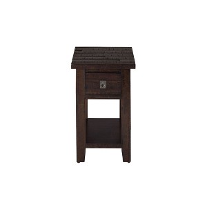 Perfect for creating a warm and inviting atmosphere in your living room, the Kona Grove collection has a rich dark chocolate brown finish with intentional distressing that adds depth and character to any space and decor. This chairside end table is the perfect home accent with a built-in storage shelf and uniquely distressed metal hardware blended with beautiful solid Acacia construction.