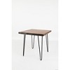 Breathtaking solid wood perfectly preserved in its most natural state makes this Live Edge End Table not only beautiful, but completely one-of-a-kind. Our artisans select slabs of Acacia hardwood and then leave the natural edge of the tree whole to create a truly stunning visual effect. This unique square end table measures approximately 24'' x 24'' as the dimensions of each piece will be slightly unique due to the live edge. Sleek hairpin legs bring attention to the rich finish that makes every single inch of the hardwood grain stand out and look amazing. This end table will make a stunning addition to any home decor with a combination of modern design and natural beauty. Available in Natural, Slate, and Chestnut finishes.